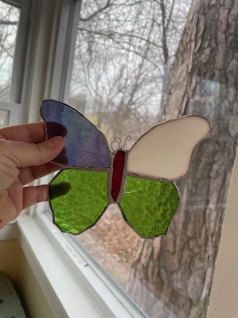Hi, I’m Kelly, the Artist behind the glass. I was lucky enough to discover my passion of creating stained glass at a young age, and was fortunate to have an amazing art teacher in high school who shared her love and knowledge of stained glass with her students.